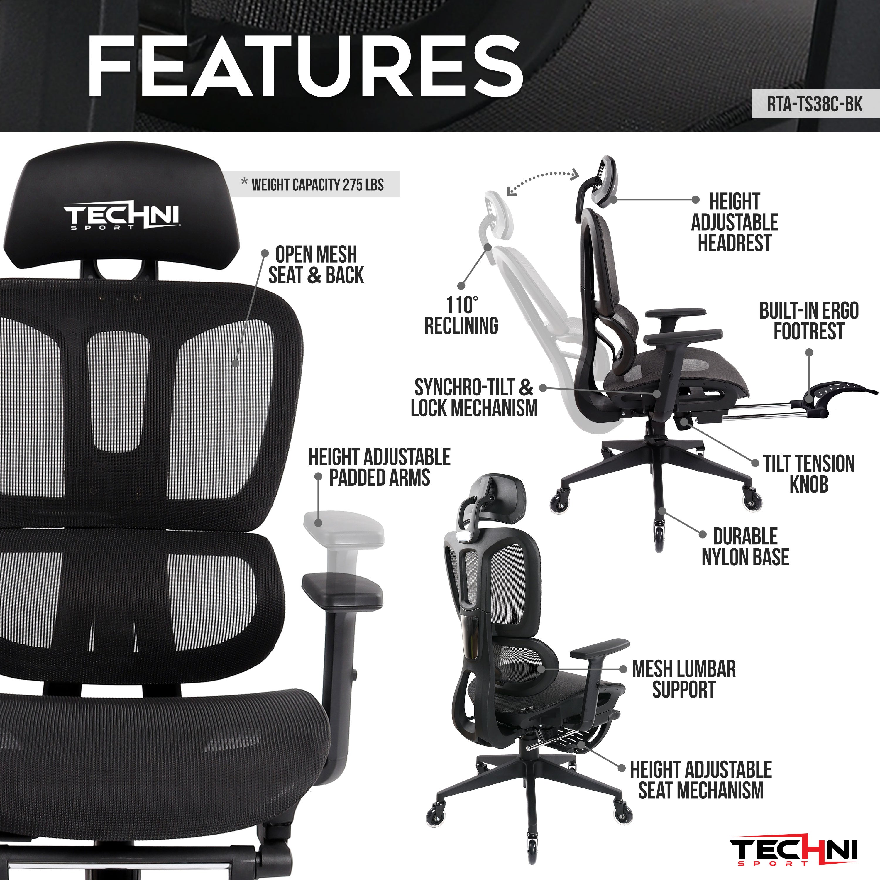 AirFlex2.0 Black Mesh Gaming Chair With Footrest
