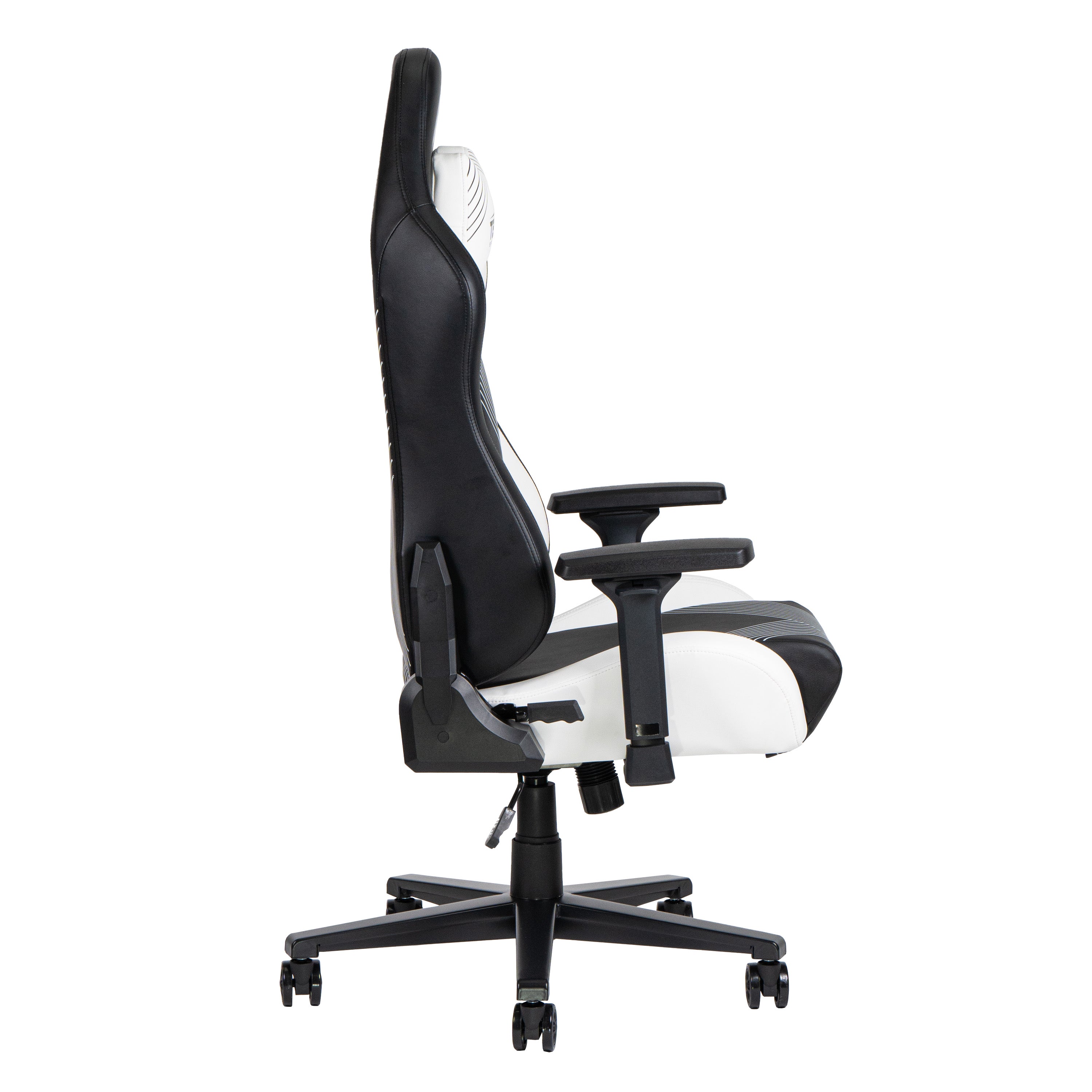 Introducing the NEW Comfort Edge, our most comfortable gaming chair, featuring a sleek black design with white accents and a luxurious leather PU upholstery surface. Experience the ultimate comfort with a memory foam seat and a 4.5" built-in foam pillow back, designed to support your ideal sitting position during gaming or work. For extra neck support, an attachable magnetic foam pillow is included. The chair’s 150-degree recline feature allows you to take a relaxing mid-game break, while the 3D padded armrests adjust in all three directions to provide excellent support and precision.