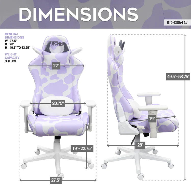 Moo-ve over, ordinary chairs – the Lavender Cow Chair is here to steal the spotlight! It's the dreamy lavender twist on the viral Cow Chair that took the internet by storm. Sink into velvet-like seats that feel like a cloud of coziness. And guess what? This isn't just a chair – it's a whole mood with a lumbar pillow that pampers your lower back and a headrest pillow complete with adorable cow ears and horns! It's cute, it's comfy, and it's udderly irresistible. Don't miss your chance to own the trendiest seat on the farm. Saddle up and bring the Lavender Cow Chair home today!