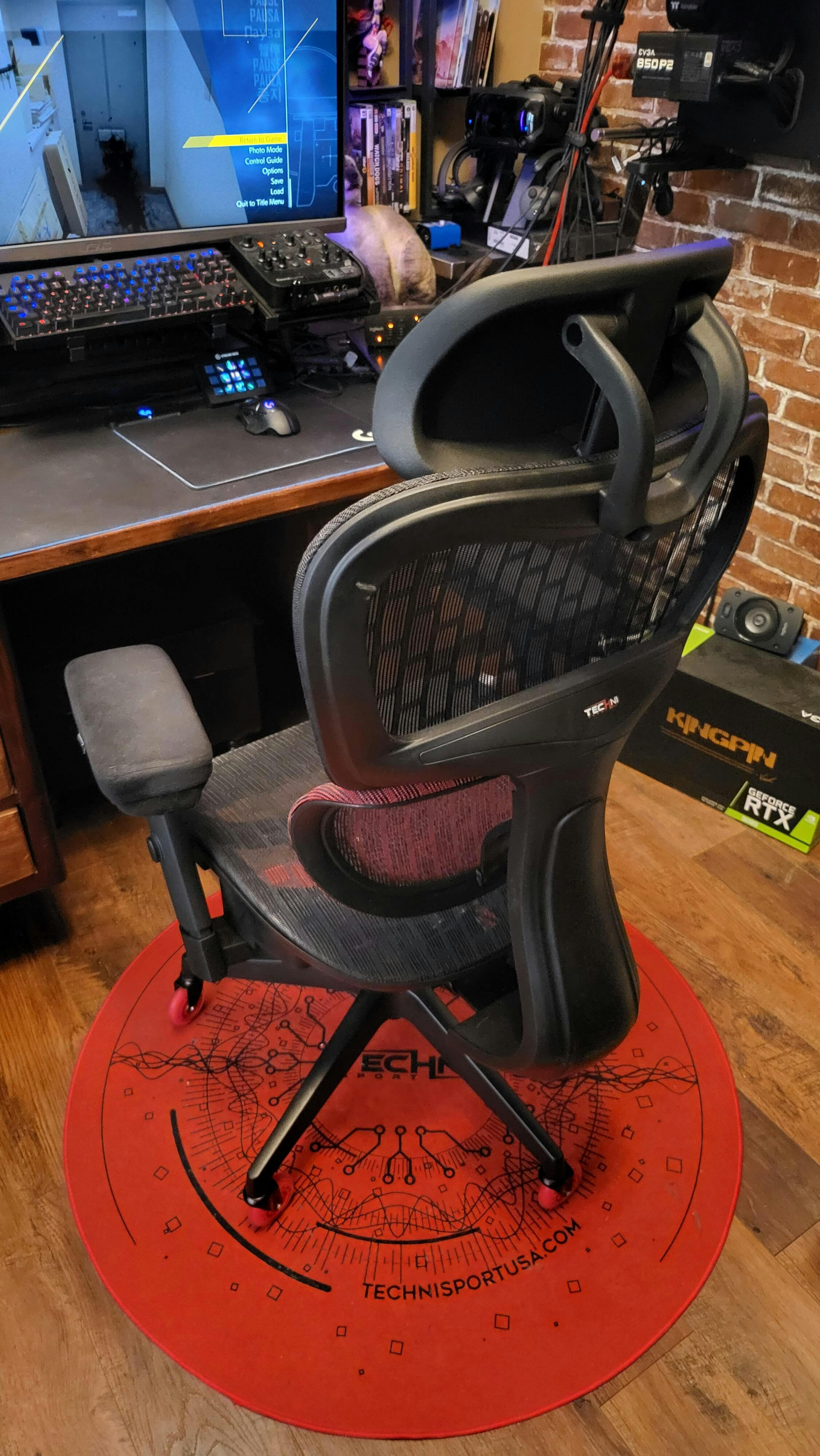 I have been looking for the perfect chair mat since putting down laminate wood flooring in my office. I have tried everything from rugs to door mats, but they all have some problem or another, mainly they don’t want to stay in place or bunch up. This may not be an issue for everyone but at 5’10” and 195 pounds it is an issue for me. I have also tried various types of wheels and the problem persists. The Techni Sport Circuit 40” works pretty well though. It protects the floor well and keeps my chair in place when while using it and the chair rolls with little effort when I want to move it. I also think the graphics printed on it are nice but it would be great if they could be customized. The 40 inch size seems to be the perfect size as long as it stays where you want it. This brings me to the downside. It does stay in place pretty well; better than most I have tried, but if I get in and out of the chair a few time it will tend to move out of place and eventually bunch up or the wheels will be off the mat. Carpet tape would probably fix this but I am afraid that might damage the floor. Also, you have pets this mat acts as a lint brush and collects every bit of hair and dust around. I wish I had ordered a darker color because it really shows up on the red one. Overall, it is the best solution I have found and I am happy with the performance and quality of the mat and would recommend the Techni Sport Circuit 40” Round Chair Mat.
